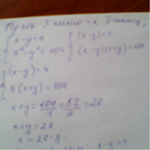 2.Найдите большее из двух чисел , если их разность равна 4, а разность квадратов -104