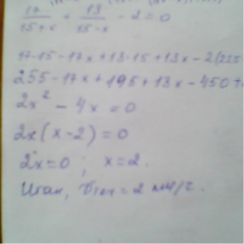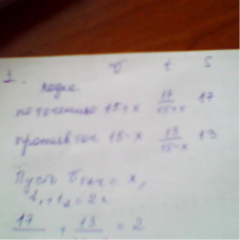 1. Моторная лодка прошла 17 км по течению реки и 13 км против течения, затратив на весь путь 2 ч. Найдите скорость течения реки , если скорость моторной лодки равна 15 км/ч.