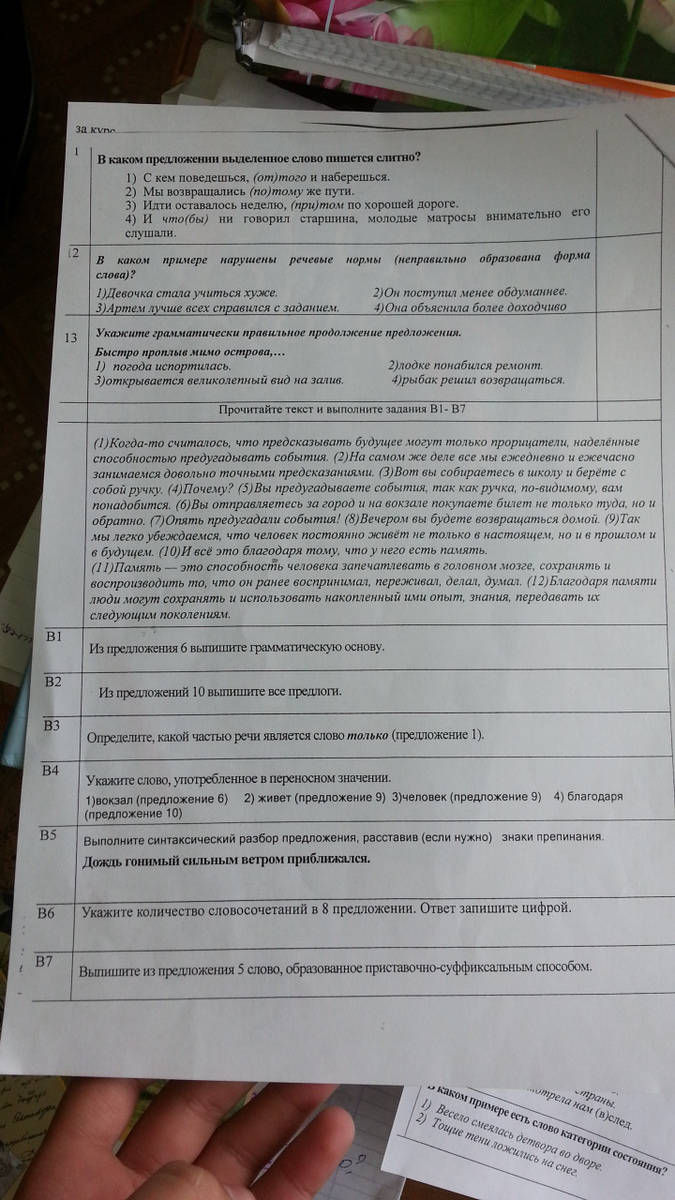 В5) Дождь(подлежащее), | гонимый сильным ветром |(определение), приближается(сказуемое). (Повествовательное,невосклицательное,распространенное,простое)
