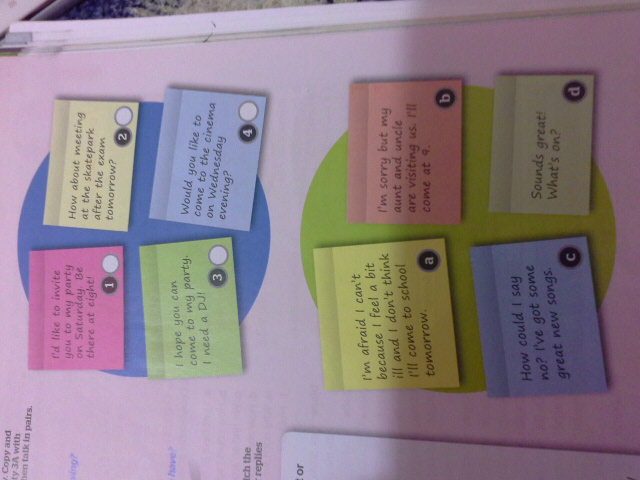 2-a (2-приглашение в парк после школы;a- отказ:болен, завтра в школу не пойду)