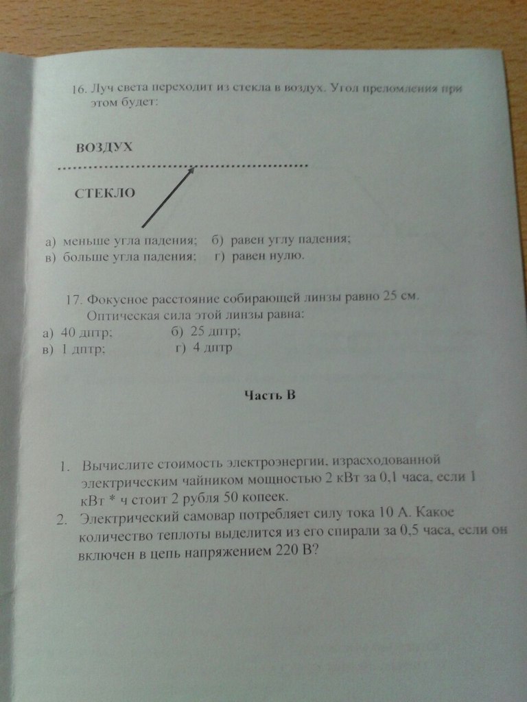 16. так как луч переходит из более плотной среды в менее плотную, значит угол преломления будет больше угла падения