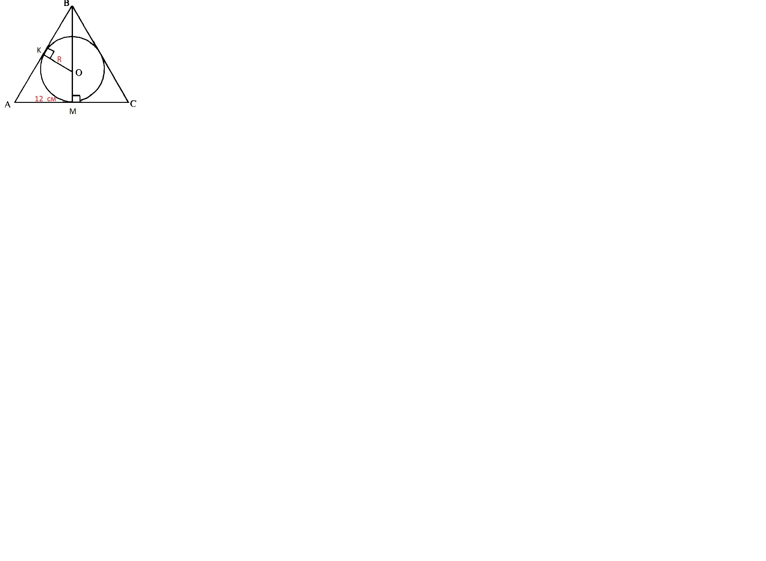 найдите радиус окружности, вписанной в равнбедренный треугольник с основанием 12 см и периметров 32 см