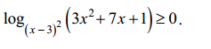 ![log_{(x-3)^2}{(3x^2+7x+1)} \geq 0\; ,\; \; ODZ:\; \left \{ {{(x-3)^2\ \textgreater \ 0,\; (x-3)^2\ne 1} \atop {3x^2+7x+1\ \textgreater \ 0}} \right. \; \to \\\\ \left \{ {{x\ne 3,\; x\ne 4,\; x\ne 2} \atop {3x^2+7x+1\ \textgreater \ 0}} \right. \\\\(((x-3)^2-1)((3x^2+7x+1)-1) \geq 0\\\\(x^2-6x+8)(3x^2+7x) \geq 0\\\\(x-4)(x-2)\cdot x\cdot (3x+7) \geq 0\\\\+++(-\frac{7}{3})---(0)+++(2)---(4)+++\\\\x\in (-\infty,-\frac{7}{3}\, ]U[\, 0,2\, ]U[\, 4,+\infty)\\\\x\ne 3,\; x\ne 4,\; x\ne 2\\\\x\in (-\infty,\frac{-7-\sqrt{37}}{6})U(\frac{-7+\sqrt{37}}{6},+\infty) log_{(x-3)^2}{(3x^2+7x+1)} \geq 0\; ,\; \; ODZ:\; \left \{ {{(x-3)^2\ \textgreater \ 0,\; (x-3)^2\ne 1} \atop {3x^2+7x+1\ \textgreater \ 0}} \right. \; \to \\\\ \left \{ {{x\ne 3,\; x\ne 4,\; x\ne 2} \atop {3x^2+7x+1\ \textgreater \ 0}} \right. \\\\(((x-3)^2-1)((3x^2+7x+1)-1) \geq 0\\\\(x^2-6x+8)(3x^2+7x) \geq 0\\\\(x-4)(x-2)\cdot x\cdot (3x+7) \geq 0\\\\+++(-\frac{7}{3})---(0)+++(2)---(4)+++\\\\x\in (-\infty,-\frac{7}{3}\, ]U[\, 0,2\, ]U[\, 4,+\infty)\\\\x\ne 3,\; x\ne 4,\; x\ne 2\\\\x\in (-\infty,\frac{-7-\sqrt{37}}{6})U(\frac{-7+\sqrt{37}}{6},+\infty)](https://tex.z-dn.net/?f=log_%7B%28x-3%29%5E2%7D%7B%283x%5E2%2B7x%2B1%29%7D+%5Cgeq+0%5C%3B+%2C%5C%3B+%5C%3B+ODZ%3A%5C%3B++%5Cleft+%5C%7B+%7B%7B%28x-3%29%5E2%5C+%5Ctextgreater+%5C+0%2C%5C%3B+%28x-3%29%5E2%5Cne+1%7D+%5Catop+%7B3x%5E2%2B7x%2B1%5C+%5Ctextgreater+%5C+0%7D%7D+%5Cright.+%5C%3B+%5Cto+%5C%5C%5C%5C+%5Cleft+%5C%7B+%7B%7Bx%5Cne+3%2C%5C%3B+x%5Cne+4%2C%5C%3B+x%5Cne+2%7D+%5Catop+%7B3x%5E2%2B7x%2B1%5C+%5Ctextgreater+%5C+0%7D%7D+%5Cright.+%5C%5C%5C%5C%28%28%28x-3%29%5E2-1%29%28%283x%5E2%2B7x%2B1%29-1%29+%5Cgeq+0%5C%5C%5C%5C%28x%5E2-6x%2B8%29%283x%5E2%2B7x%29+%5Cgeq+0%5C%5C%5C%5C%28x-4%29%28x-2%29%5Ccdot+x%5Ccdot+%283x%2B7%29+%5Cgeq+0%5C%5C%5C%5C%2B%2B%2B%28-%5Cfrac%7B7%7D%7B3%7D%29---%280%29%2B%2B%2B%282%29---%284%29%2B%2B%2B%5C%5C%5C%5Cx%5Cin+%28-%5Cinfty%2C-%5Cfrac%7B7%7D%7B3%7D%5C%2C+%5DU%5B%5C%2C+0%2C2%5C%2C+%5DU%5B%5C%2C+4%2C%2B%5Cinfty%29%5C%5C%5C%5Cx%5Cne+3%2C%5C%3B+x%5Cne+4%2C%5C%3B+x%5Cne+2%5C%5C%5C%5Cx%5Cin+%28-%5Cinfty%2C%5Cfrac%7B-7-%5Csqrt%7B37%7D%7D%7B6%7D%29U%28%5Cfrac%7B-7%2B%5Csqrt%7B37%7D%7D%7B6%7D%2C%2B%5Cinfty%29)