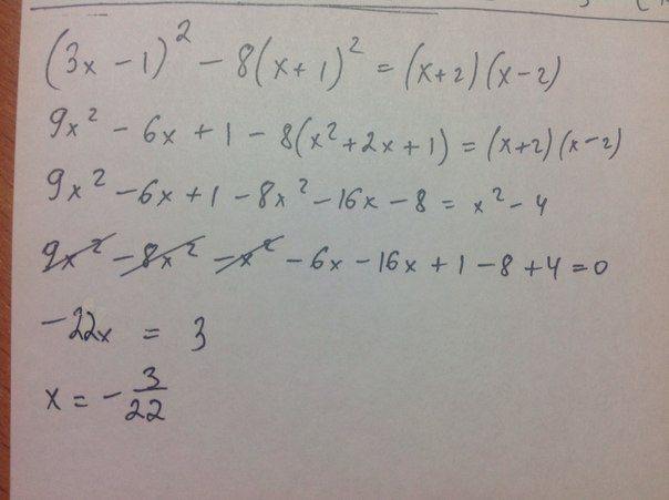 (3х-1)^2-8(х+1)^2=(х+2)(х-2)