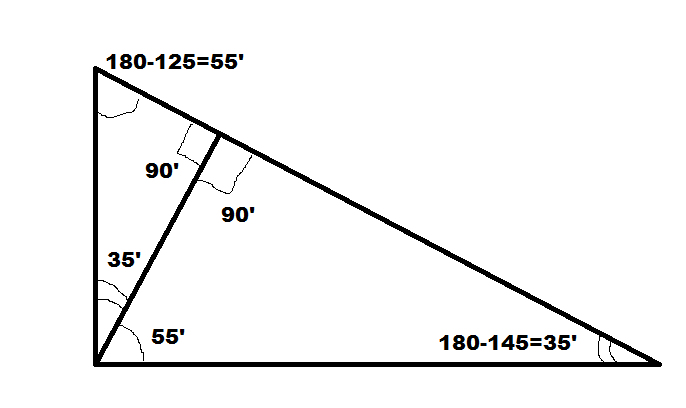Высота прямоугольного треугольника опущенная на гипотенузу образует с одним из катетов угол 55 градусов. Найдите острые углы этого треугольника