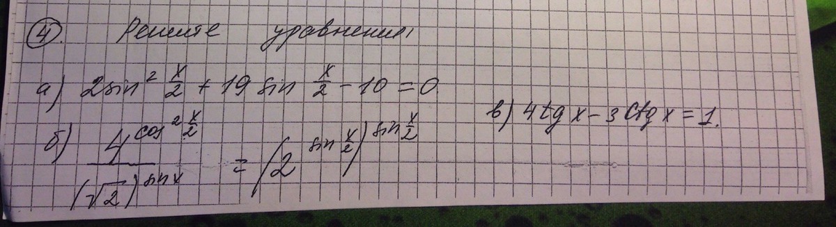a) 2sin²(x\2)+19sin(x\2)-10=0 Введём замену переменной: sin(x\2)=y