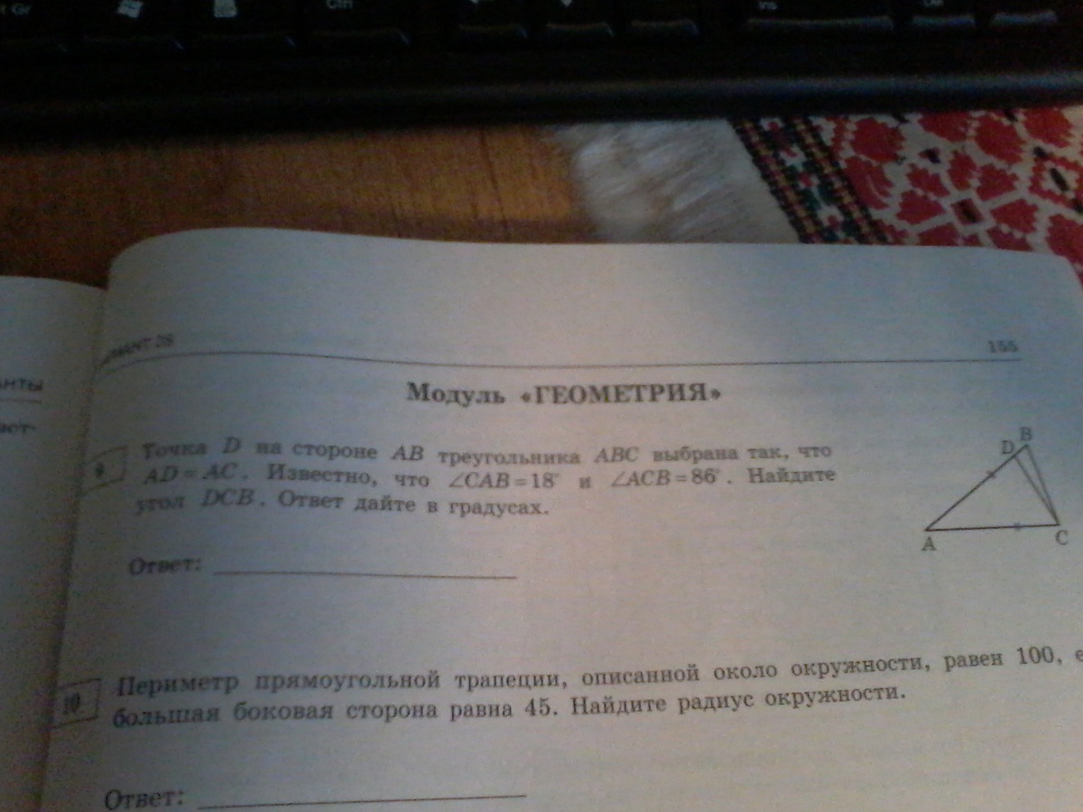 Рассмотрим равнобедренный треугольник АСД соснованием СД. По свойству прилеж. к основанию углов равноб.треуг, угол АДС= ДСА= 180-18/2= 81