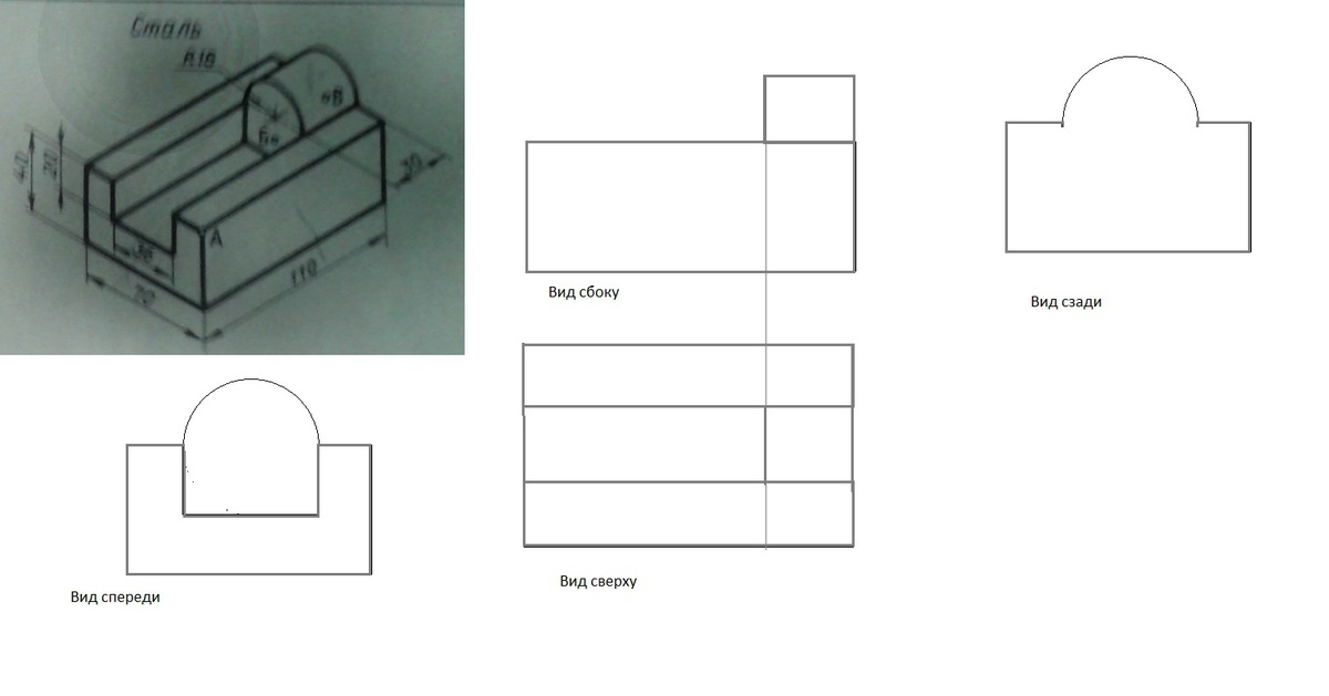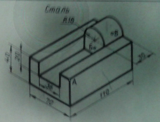Фото нечеткое, размеров не разобрать. Как проводят вспомогательные линии я давно забыла. Но выглядеть чертеж должен так, как дано в приложении. Руководствуясь эскизом, Вы сможете сделать свой чертеж соответствующим нужным размерам.