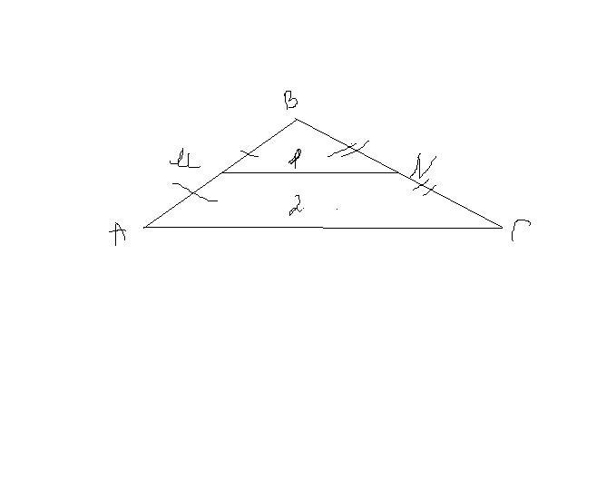 Средняя линия MN равна половине стороны АС. Тогда коэффициент подобности треугольников равен AC/MN=2