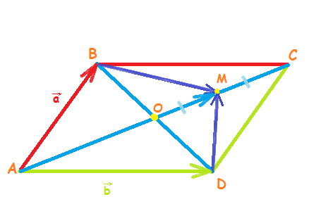В параллелограмме ABCD: вектор AB=a, AD=b, точка О - пересечение диагоналей. М лежит на середине ОС. Выразите через a и b сумму: BM+DM.