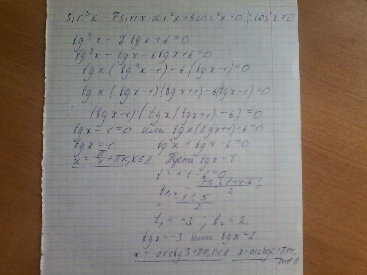 sin^3 x - 7 sin x cos^2 x + 6 cos^3 x = 0