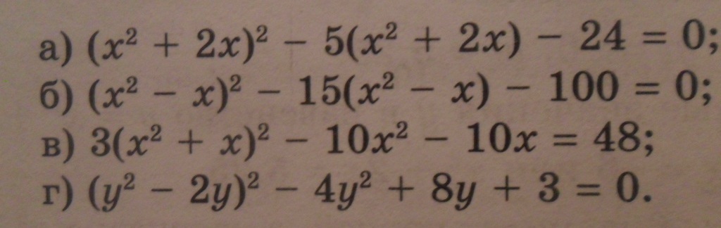Решите уравнение методом введения новой переменной. Под буквами "б" и "в".