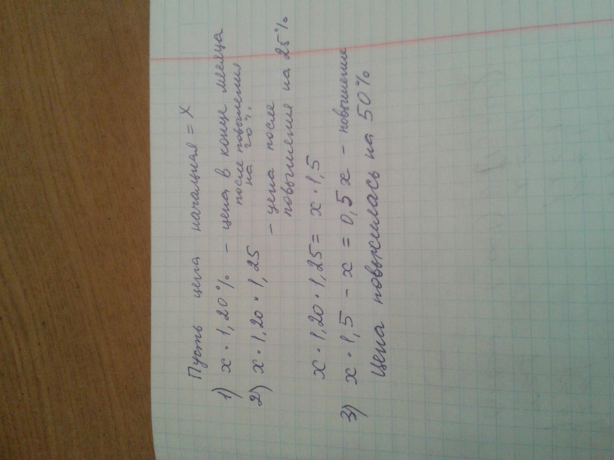 В течение месяца цена на товар повысилась на 20%, а затем еще на 25%. На сколько процентов всего повысилась первоначальная цена товара?