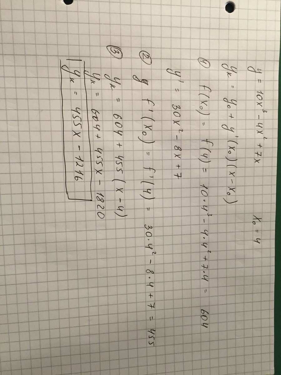 2)составить уравнение касательной функции y= 10x^3-4x^2+7x в точке x0 =4