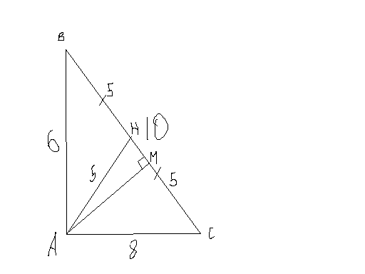 3).AM=(АВ*АС)/ВС=(6*8)/10=4,8 высота.