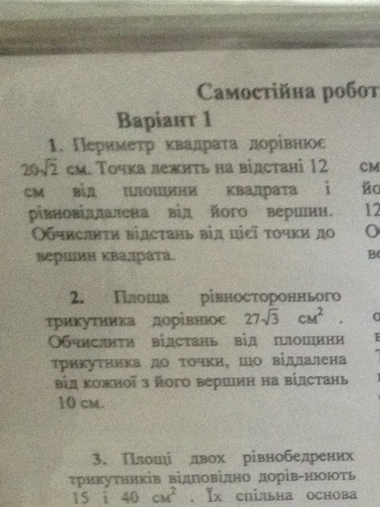 расстояние от точки до плоскости треугольника =8 см