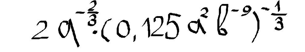 =2*a^(-2/3) ×(0,5³a²b⁻⁹)^(-1/3)= 2a^(-2/3) * (0,5⁻¹ *a^(-2/3) b³) = 2*2*a^(-4/3)*b³=4a^(-4/3)*b³