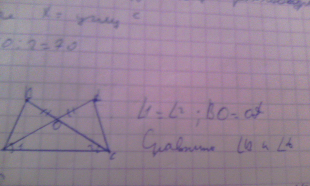 треугольники ВОА и DOC равны по двум сторонам и углу между ними