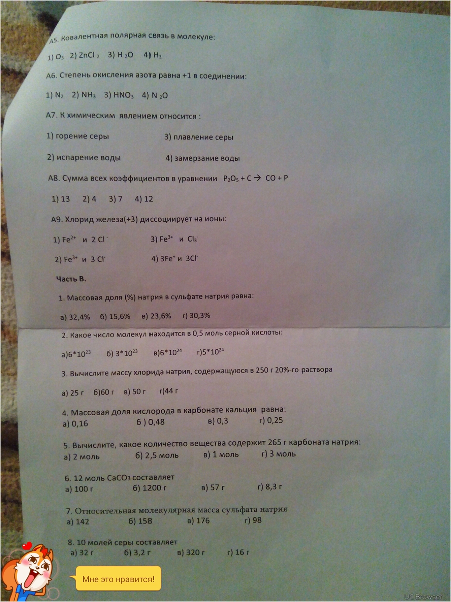 В7)M(Na2SO4)=2*23 г/моль+32 г/моль + 4*16 г/моль = 142 г/моль ---> а)