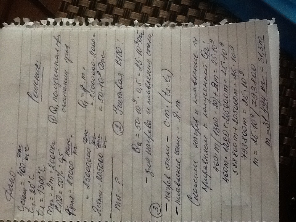 Ньюанс: температура плавления стали в справочнике 1300-1400, я взяла 1300. Если взять 1400, то конечный ответ будет около 40т