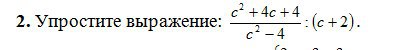 \frac{ c^{2}+4c+4 }{ c^{2}-4 }: c^{2}+2  = \frac{ (c+2)^{2} }{( c^{2}-4)*(c+2) } = \frac{c+2}{(c+2)(c-2)} = \frac{1}{c-2}