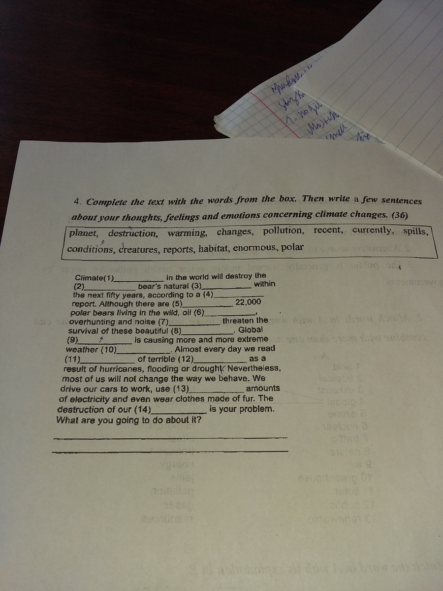 1 changes 2 polar 3 habitat 4 recent 5 currently 6 spills 7 pollution 8 creatures 9 warming 10 conditions 11 reports 12 destruction 13 enormous 14 planet
