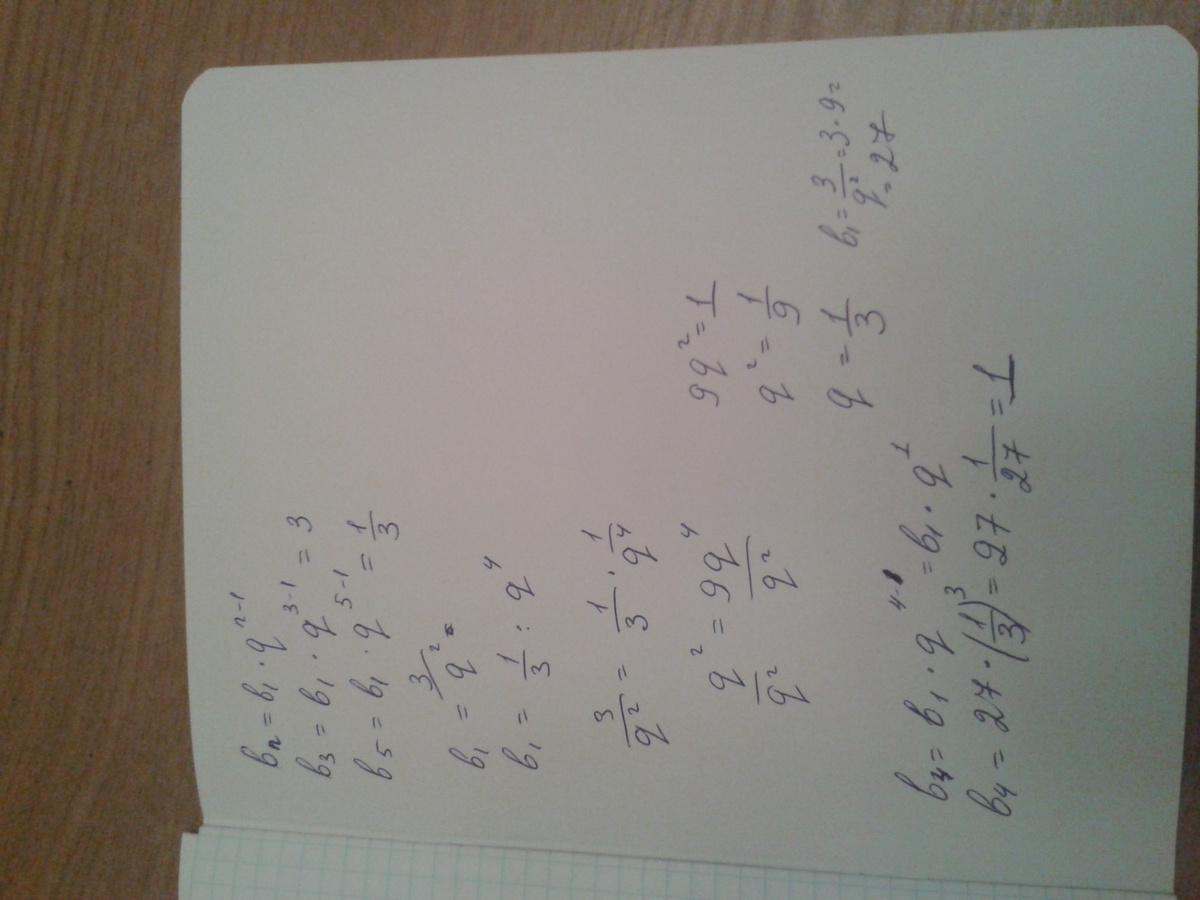 В геометрической прогрессии B3=3, B5=1/3. Надо найти B4, если известно, что знаменатель q положителен.