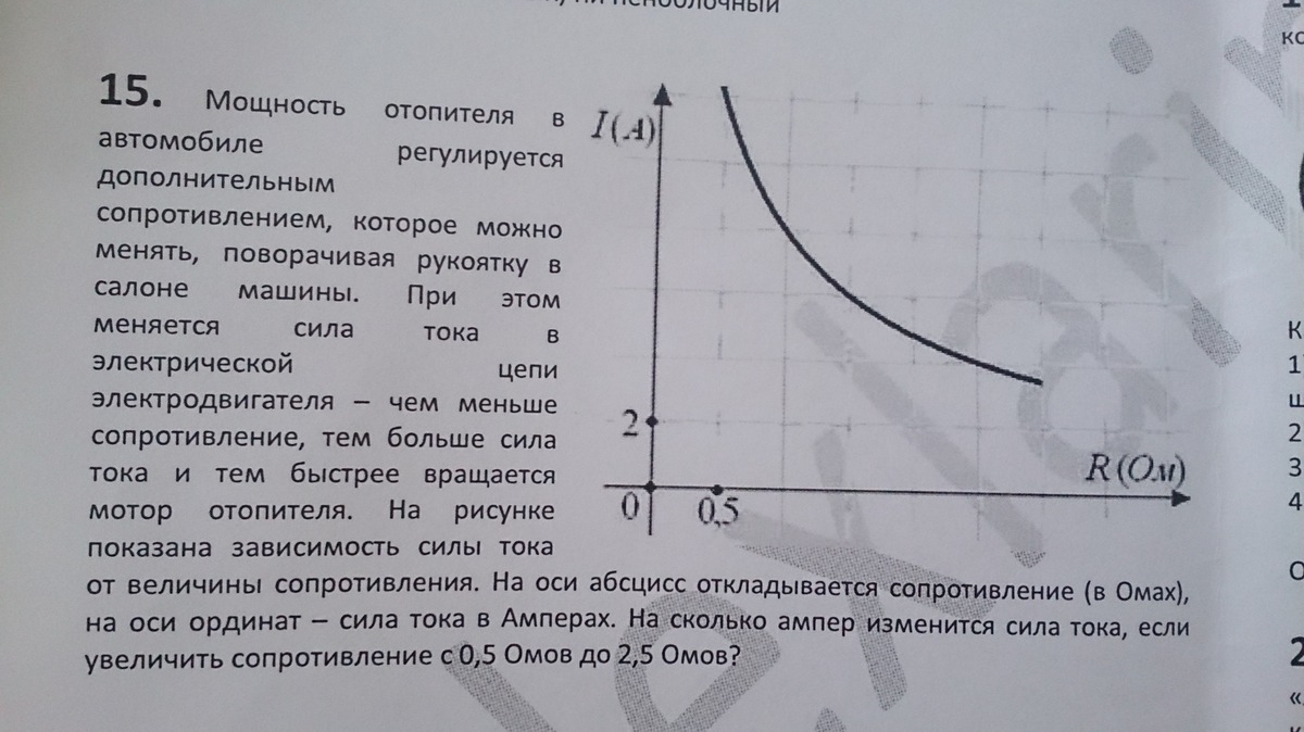 4 значение силы тока на оси ординат при сопротивлении 2,5 Ом