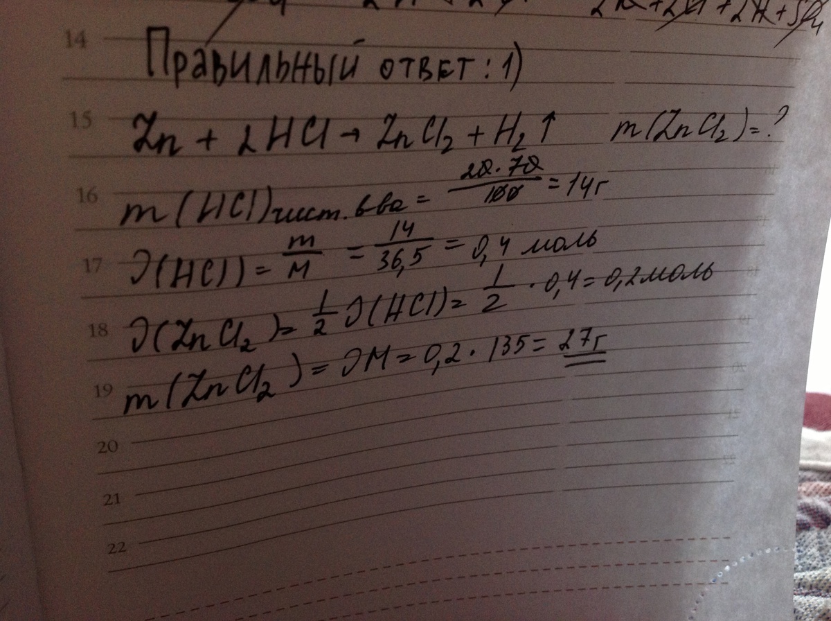 m(ZnCl2)= n*M= 0,2*136 = 27,2 г
