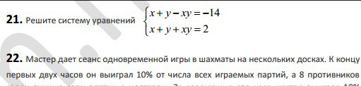Складываем две эти системы и получаем : x+y-xy+x+y+xy=-14+2 ;