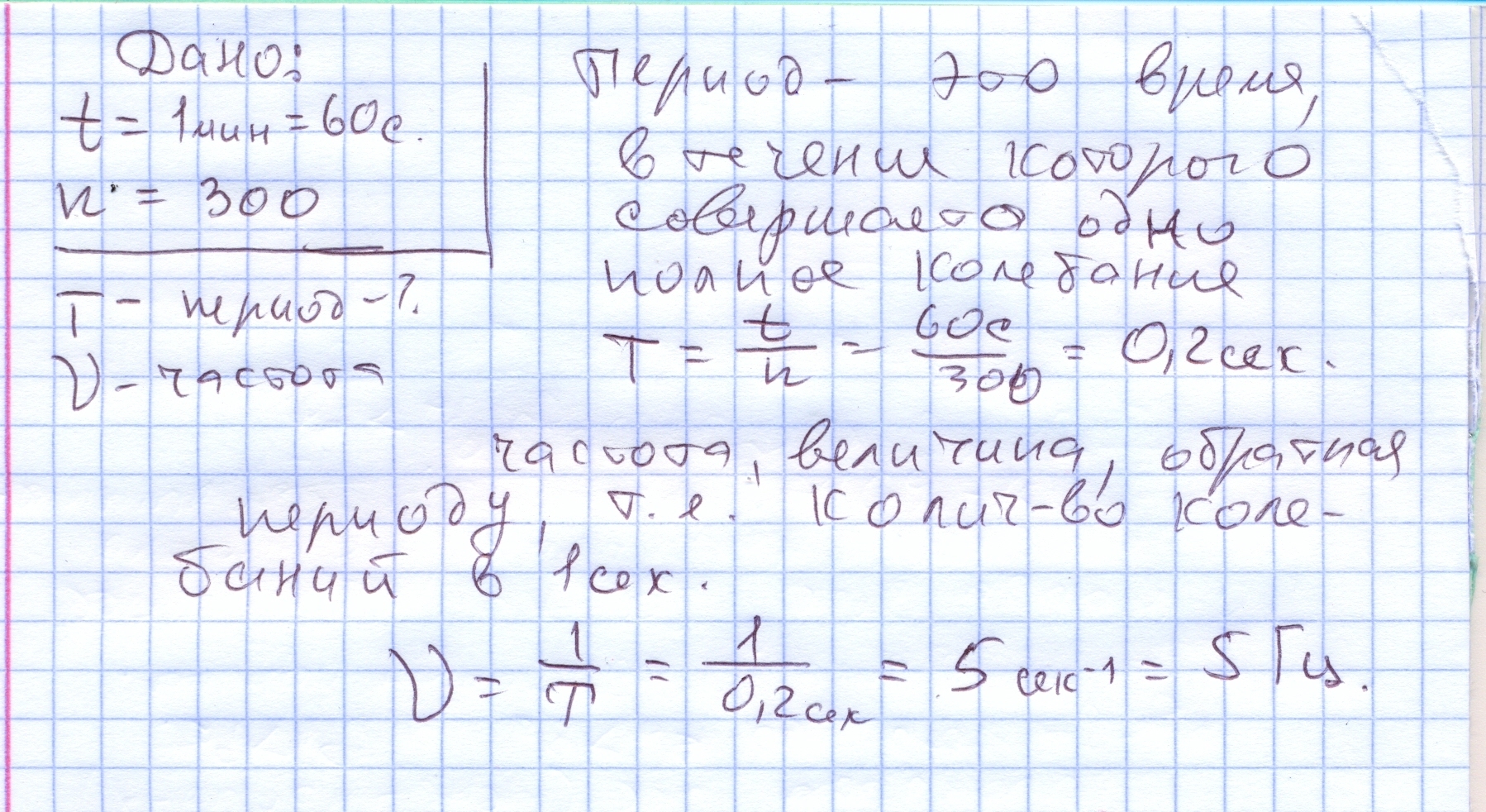 тело за 1 мин совершило 300 колебаний.определите период и частоту колебаний