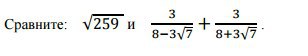 √259≈16; 3/(8-3√7) + 3/(8+3√7)=(24+9√7+24-9√7)/(64-9·7)=48;16<48