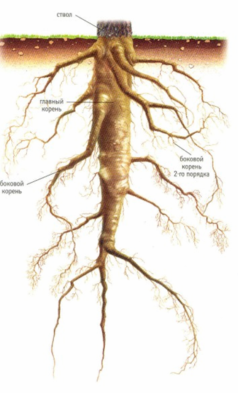 корневая система, у которой хорошо развит главный корень по сравнению с боковыми корнями