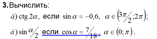 2) sin²a/2=(1-cosa)/2 = (1-7/18)/2 = 11/36 (2 четверть)
