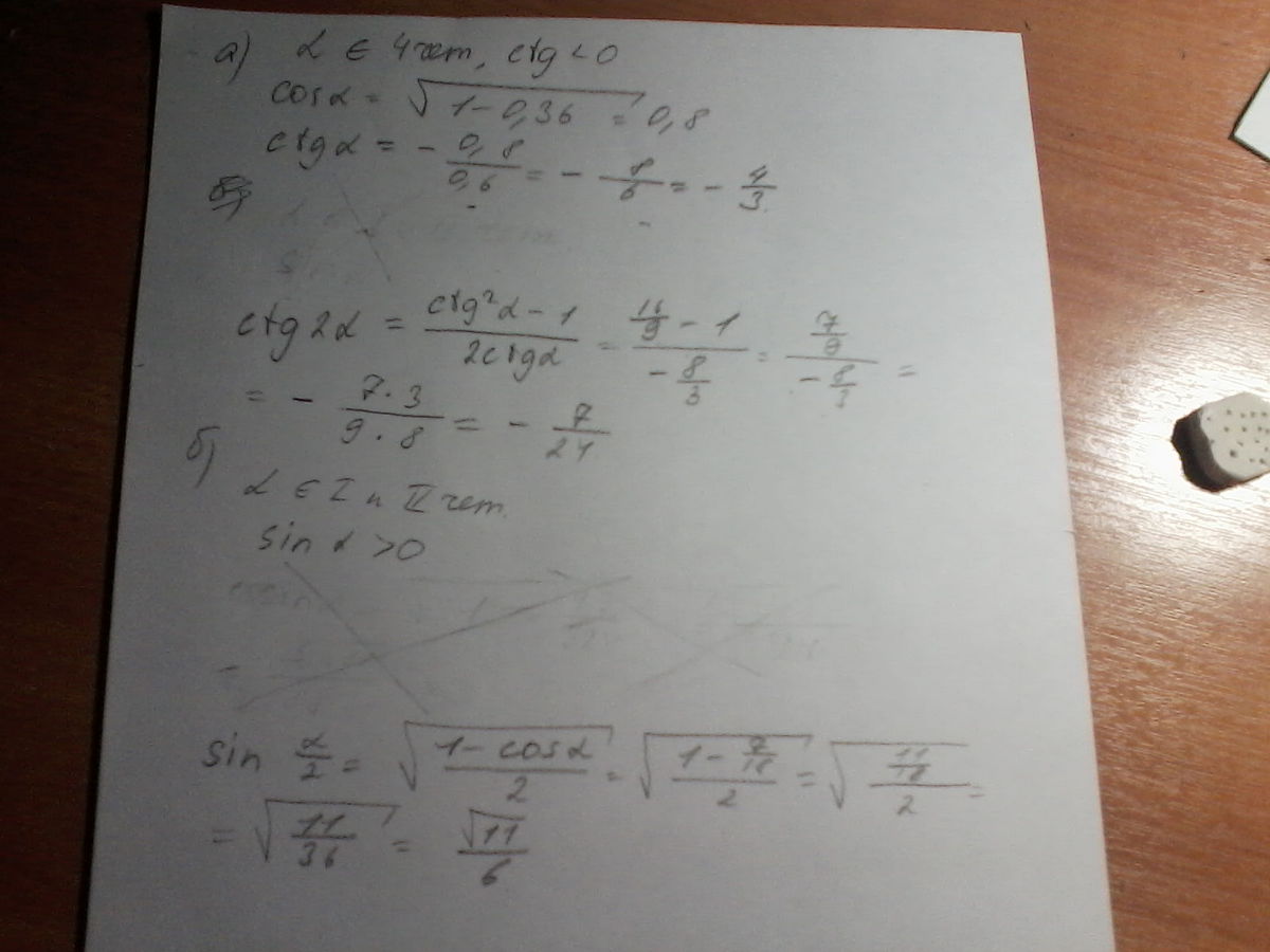 1) cos²a=1-sin²a=1-0,36=0,64 (4 четверть) cosa=0,8
