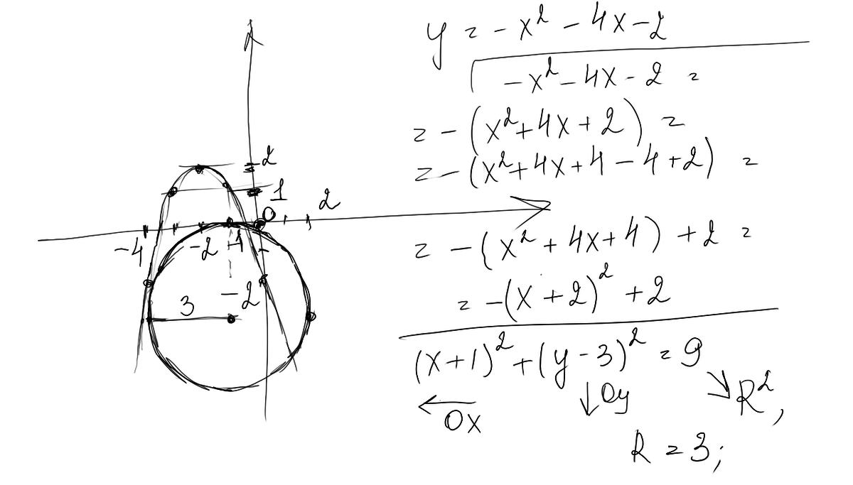 Неправильно показан на рисунке центр окружности по оси у - надо +3.