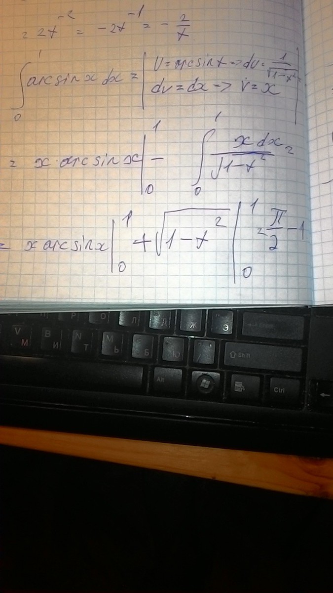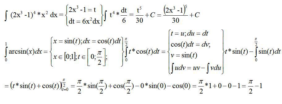 СРОЧНО НУЖНО!!!!!!!!! ИНТЕГРАЛ!!!!!!! 1) интеграл (2x^-1)^4*x^2 dx, 2)интеграл от 0 до 1 arcsin x dx