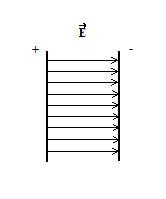 В файле однородное электрическое поле между разноимённо заряженными пластинами, можно сказать что между обкладками заряженного конденсатора