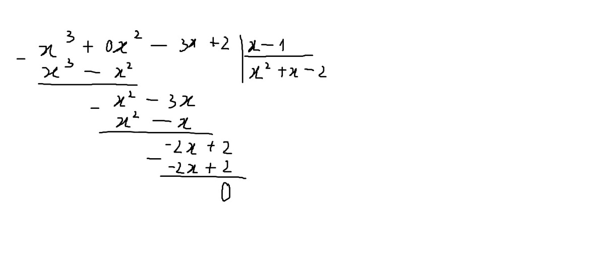 Найдём теперь остальные. Для этого разделим левую часть уравнения столбиком на x-1. Как делить многочлены столбиком, на этом я не останавливаюсь. Сейчас выложу схему деления.