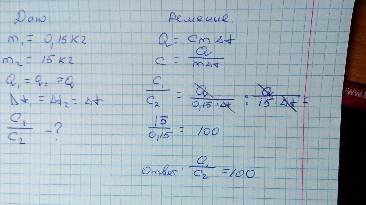 на увеличение температуры 0.15 кг льда и 15 кг железа на 1.575 К требуется одинаковое количество теплоты. отношение удельных теплоемкостей льда и железа равно! с меня 30 баллов