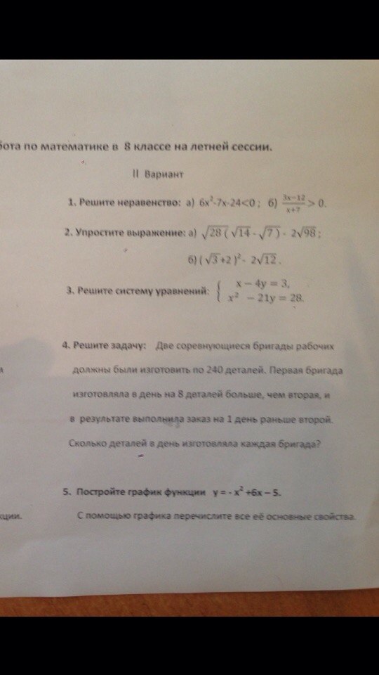 4. 48 деталей в день изготавливала первая бригада, 40 деталей - вторая.
