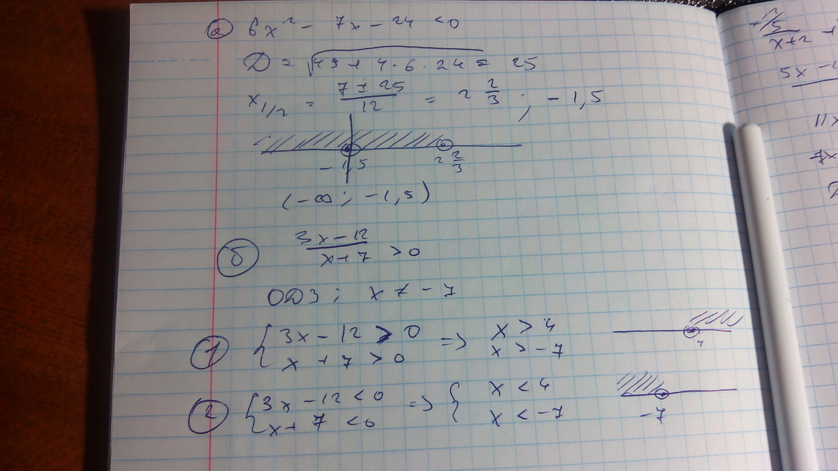1. a) x∈(-1,5;8/3) б) х∈(-∞;-7)∨(4;+∞)