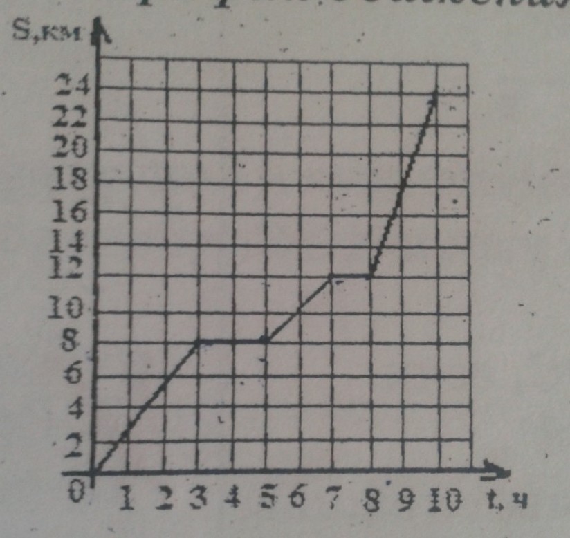 1. На участке от 0 до 3 ч скорость была 8/3= 2 2/3 км/ч