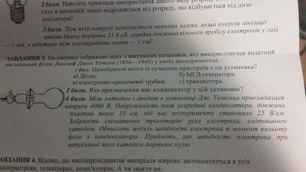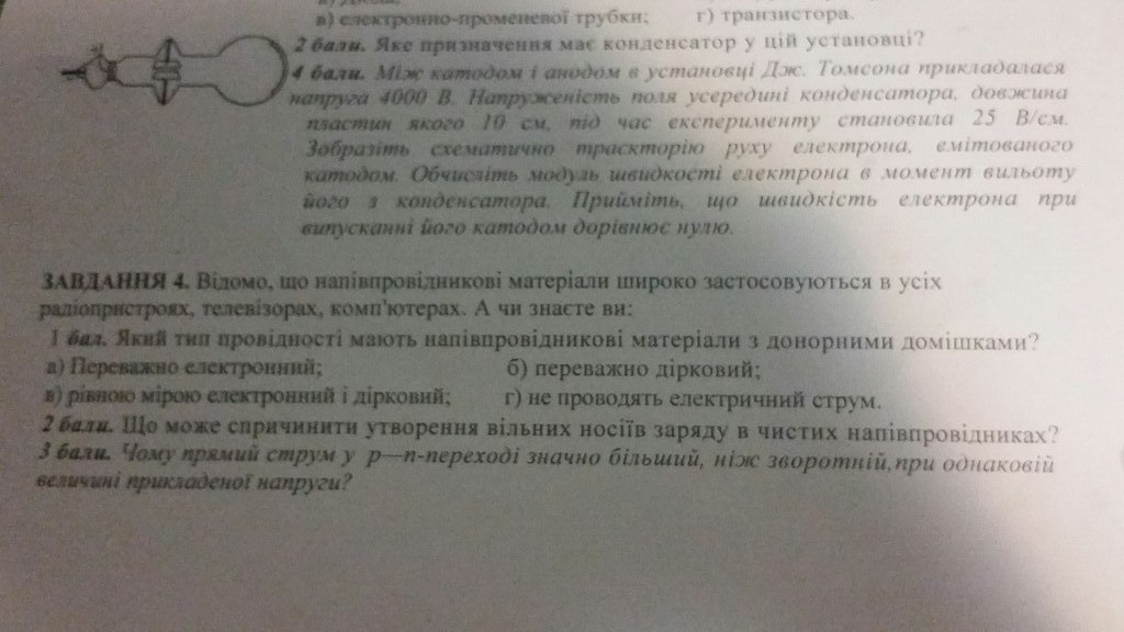 4) напряжение 4000В придаст электрону кинетическую энергию, равную 4000*q, где q - заряд электрона. E=4000*1.6*10^(-19)=6.4*10^(-16)Дж