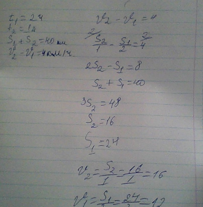 велосипедист ехал 2 часа по лесной дороге и 1 час по шоссе,всего он проехал 40 км.Скорость его на шоссе была на 4км/ч больше,чем скорость на лесной дороге.С какой скоростью велосипедист ехал по шоссе и с какой скоростью по лесной дороге?