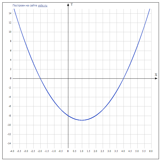 Найдите вершину,ось и точки пересечения с осями координат параболы и постройте ее график y=x^2-2x-8