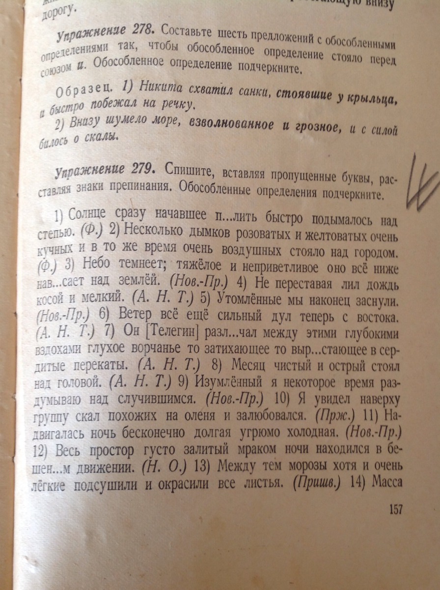 Солнце, сразу начавшее палить, быстро подымалось над степью. Несколько дымков, розоватых и желтоватых, очень кучных и в то же время очень воздушных, стояло над городом. Небо темнеет; тяжелое и неприветливое, оно все ниже нависает над землей. Не переставая лил дождь, косой и мелкий. Утомленные, мы наконец заснули. Ветер, все еще сильный, дул теперь с востока. Он [Телегин] различал между этими глубокими вздохами глухое ворчанье, то затихающее, то вырастающее в сердитые перекаты. Месяц, чистый и острый, стоял над головой. Изумленный, я некоторое время раздумываю над случившимся. Я увидел наверху группу скал, похожих на оленя, и залюбовался. Надвигалась ночь, бесконечно долгая, угрюмо холодная. Весь простор, густо залитый мраком ночи, находился в бешеном движении. Между тем морозы, хоть и очень легкие, подсушили и окрасили все листья. Масса земли, не то синей, не то серой, местами лежала горбатой кучкой, местами полосой тянулась по горизонту. Стояла белая зима с жестокою тишиной безоблачных морозов, плотным, скрипучим снегом, розовым инеем на деревьях, бледно-изумрудным небом, шапками дыма над трубами, клубами пара из мгновенно раскрытых дверей, свежими, словно укушенными, лицами людей и хлопотливым бегом продрогших лошадок.