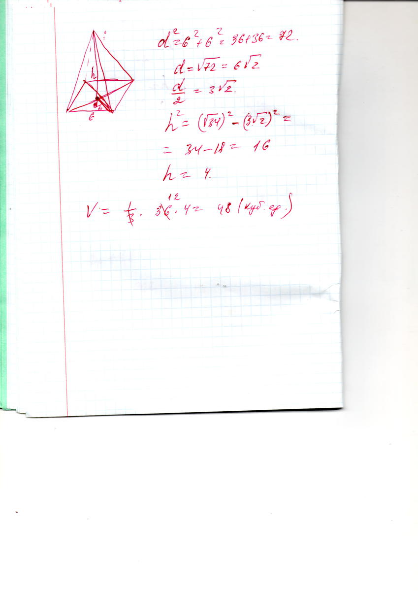 равно корень из 34 . Найдите объем пирамиды.
