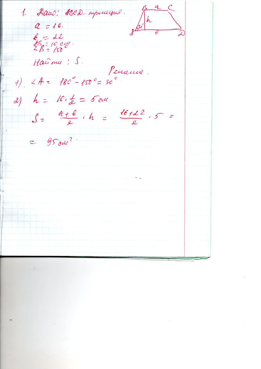 оснований трапеции угол 150°. Найдите площадь трапеции.