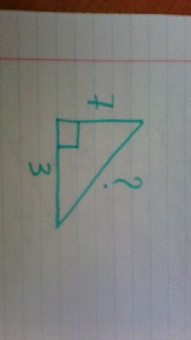 по теореме Пифагора: x= корень из (7^2 + 3^2)= корень из (49+9)=корень из 58